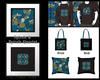 I've created a new range with prints, t-shirts, baby wear, stickers, tote bags and cushion covers. The range is inspired by my love for spirals, Klimt and Alice in Wonderland. Each design was The motifs are chose to cover a wide range of tastes and ages.